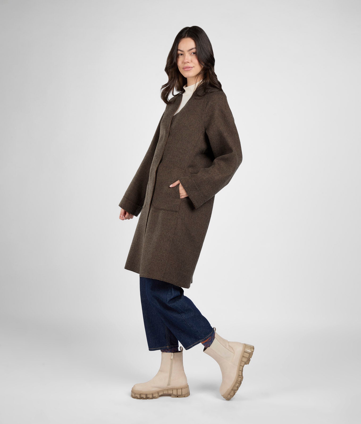 The Reversible Nom Coat combines 40% merino wool and 60% Baby Alpaca to create a versatile two-in-one piece. Soft, warm, and extraordinarily comfortable, this reversible coat offers functional elegance with the thermoregulating properties of luxury natural fibers.