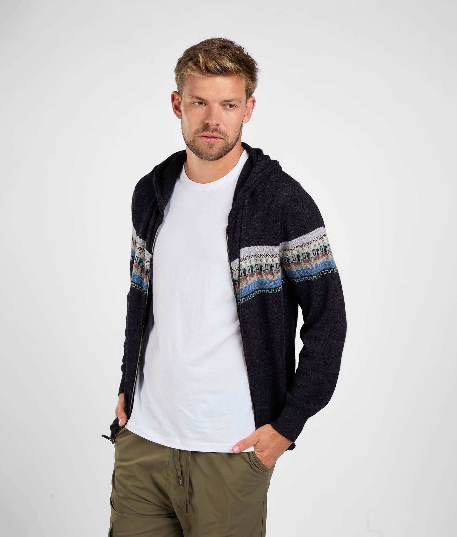 The Walk Cardigan in 100% Baby Alpaca combines urban style with traditional details. Soft, lightweight, and warm, this hooded piece with front zipper offers functional versatility with the thermoregulating and hypoallergenic properties of luxury fiber.