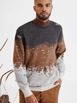 Mediated Edited Crew Neck Sweater - Dark Olive Green And Earthy Brown