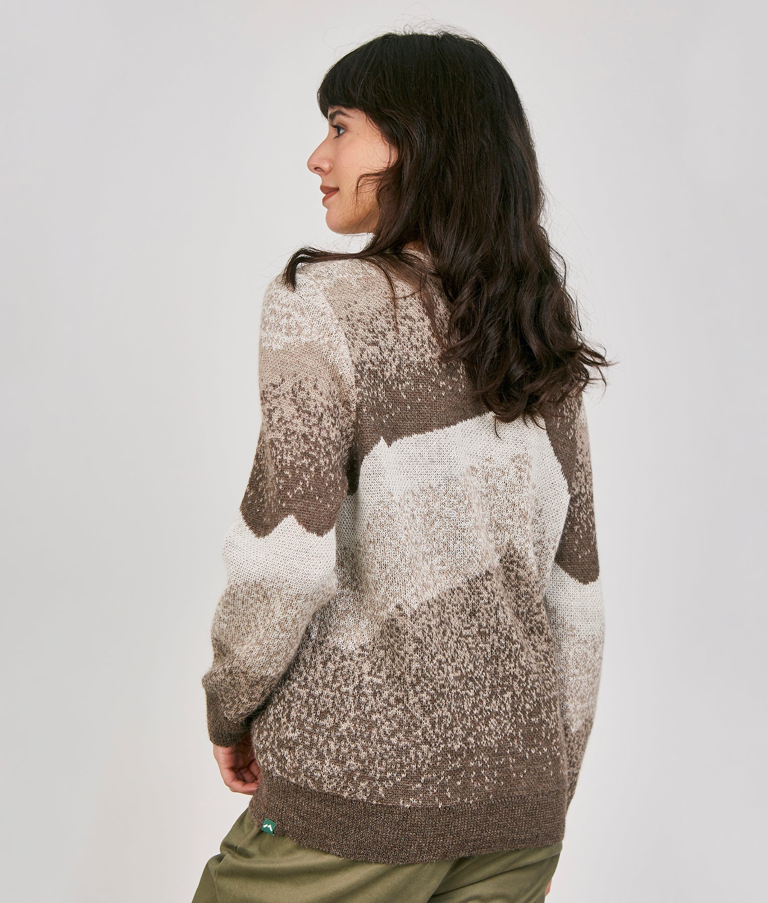 Inspired by the majestic peaks of the Ausangate mountain, this women’s sweater made from 100% baby alpaca blends contemporary design with the quiet strength of the Andes. Its soft, lightweight texture provides natural warmth without bulk, while the mountain motif evokes landscapes that inspire awe and freedom. Ideal for cold weather or reflective moments, this garment is a tribute to the mountains and to those who walk with purpose.